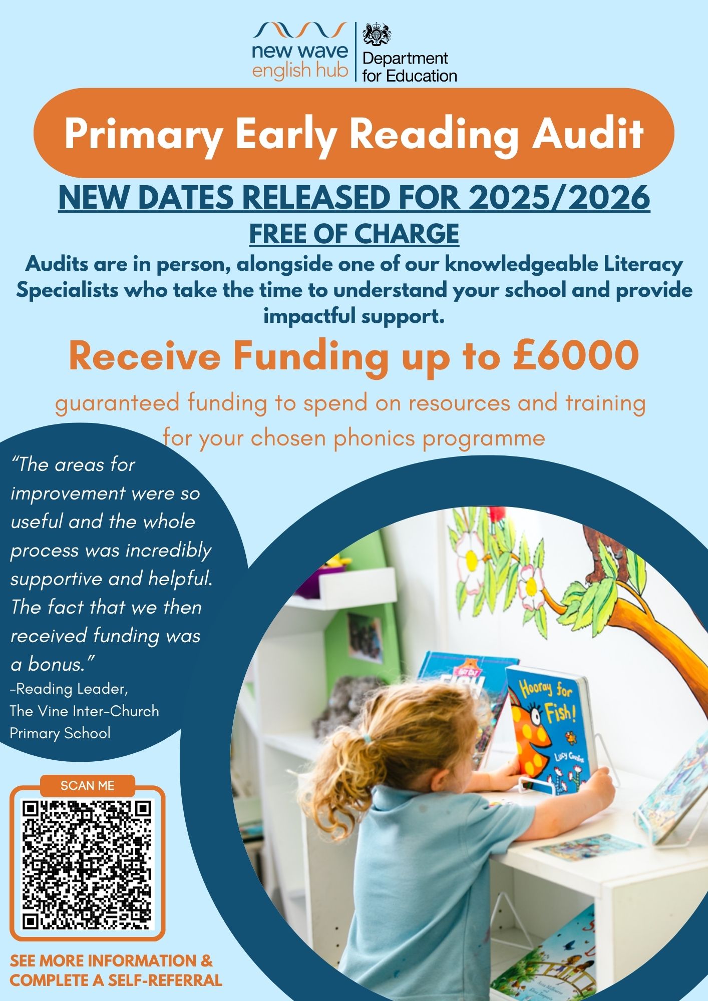 If a school feel that they would benefit from an incredibly informative early reading audit, from one of our experienced literacy specialists and with the potential access to funding, they can complete our 2025-26 self referral form.